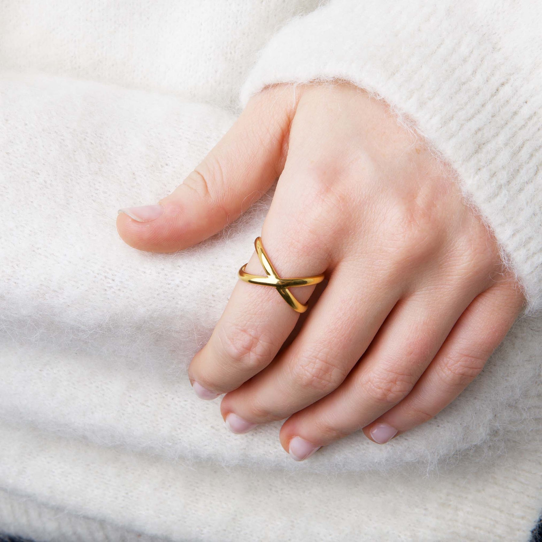 El anillo Mona está fabricado en acero inoxidable waterproof con una forma fluida y abstracta. Disponible en plata y baño de oro de 18k – artístico, moderno y versátil.